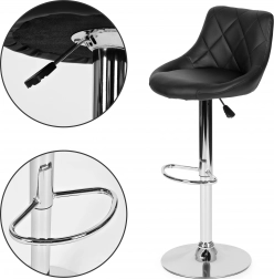 Deze moderne barkruk met chromen frame en zwart eco-leer zitvlak is een geweldige keuze voor elk interieur. Geschikt voor zowel moderne als klassieke ruimtes.