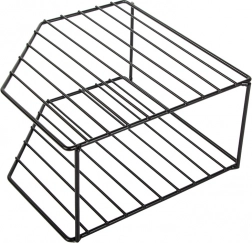 Gelakt metaal is bestand tegen corrosie en dagelijks gebruik. Het draadrooster zorgt voor stabiliteit en een goed draagvermogen.