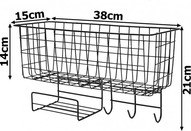 De wandorganizer is uitgerust met een ruime plank voor het opbergen van boeken, tablets, cosmetica of andere accessoires. Daarnaast is er ruimte voor tissues en drie stevige haakjes die een betere organisatie en orde mogelijk maken.