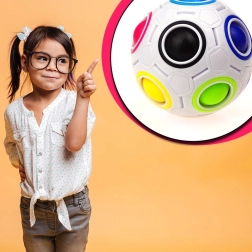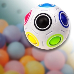 De Rainbow Ball puzzelbal is een slimme en verslavende speelgoedpuzzel gebaseerd op schuifpuzzels. Je taak is om balletjes te verplaatsen tussen de openingen en ze te rangschikken volgens de gekleurde ringen. Eén opening zonder gekleurde ring blijft leeg en dient als tijdelijke plek om te schuiven.