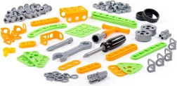 U zult ook de realistische uitstraling van het speelgoed waarderen, omdat het trouw echte gereedschappen nabootst die papa in de werkplaats heeft. In de set vindt u een schroevendraaier met schroeven en twee verwisselbare bits, een sleutel met moeren en een kurkentrekker.