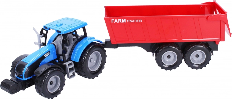 Ontdek plezier en mogelijkheden met deze tractor met inertie-aandrijving, voorzien van een aanhanger van 42 cm.