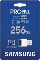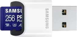 Breid je opslag uit en versnel je workflow met de Samsung PRO Plus microSDXC 256 GB. Biedt leessnelheden tot 180 MB/s en schrijfsnelheden tot 130 MB/s, ideaal voor 4K‑video dankzij de klassen U3 en V30, en levert hogere app‑prestaties met A2. In de verpakking zit een USB‑kaartlezer voor snelle gegevensoverdracht. De robuuste constructie beschermt tegen water, hitte, röntgenstralen, magneten en vallen.