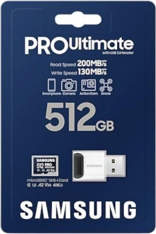 Samsung microSDXC Pro Ultimate geheugenkaart 512 GB is de perfecte keuze voor professionals en technologie-enthousiastelingen die op zoek zijn naar betrouwbaarheid en hoge overdrachtssnelheden in een compact formaat.