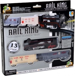 Geniet van de sfeer van de klassieke spoorweg met deze stijlvolle batterij-aangedreven treinset. De set bevat een locomotief, twee wagons en rails die een cirkel met een diameter van 67 cm vormen (baanlengte 210 cm). De trein is uitgerust met licht- en geluidseffecten voor een nog realistischer belevenis.