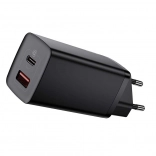 Snelle reisoplader BASEUS GaN Lite 65W, USB‑C + USB, zwart