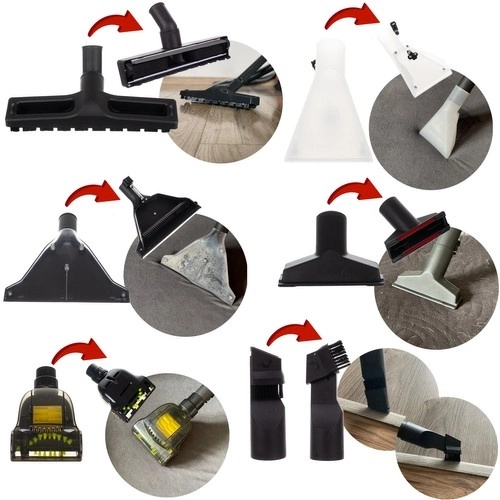 Reservoir van 3,5 l voor water en detergent, sproeier en zuigmond voor dieptereiniging van tapijten en bekleding met verkorte droogtijd.
