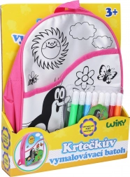 Inkleurbare Rugzak Roze met De Mol, 30 cm en 8 stiften