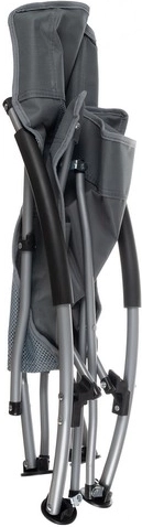 De materialen zijn gekozen met het oog op duurzaamheid: een frame van ijzer, bekleding van slijtvaste Oxford 600D-stof met polyester en beweeglijke PP-voeteinden voor zekerheid op verschillende ondergronden. Armleuningen met zacht EVA schuim verhogen het comfort bij langer zitten. De stoel klapt letterlijk in en uit binnen enkele seconden en dankzij de meegeleverde tas neem je hem eenvoudig mee op reis.