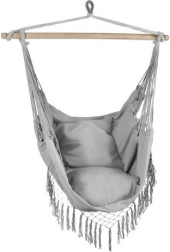 De houten spreidstang verdeelt de belasting gelijkmatig, waardoor de stoel goed uitgebalanceerd en stabiel is. Het stevige ophangtouw met montagering zorgt voor eenvoudig ophangen en veilig gebruik. In de set zitten 2 kussens van 40 × 40 cm die het zitcomfort verder verhogen.