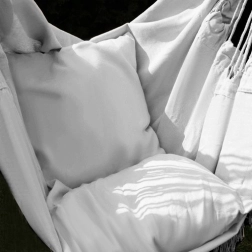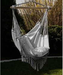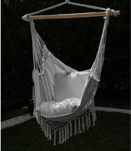Deze comfortabele hangstoel in hamak-stijl is ontworpen voor dagelijks ontspannen – van een korte siësta tot het lezen van je favoriete boek. Natuurlijk katoen met een toevoeging van polyester voelt prettig aan, ventileert goed en behoudt tegelijkertijd een hoge slijtvastheid.