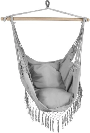 Geniet van ontspanning binnen en buiten met de hangende Braziliaanse stoel Gardlov in een elegante grijze kleur. De combinatie van katoen en polyester zorgt voor luchtigheid en duurzaamheid, terwijl de houten spreidstang stabiliteit en een comfortabele zithouding biedt. In de verpakking vind je 2 zachte kussens voor maximaal comfort. Ideaal voor terras, balkon en tuin.