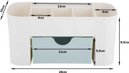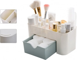 Ontdek de magie van orde met deze tweedelige organizer, die perfect uw cosmetica en sieraden op hun plek houdt. Het bovenste gedeelte bevat 6 verschillende vakken, ideaal voor lippenstift, nagellak of lipgloss, terwijl het onderste gedeelte voorzien is van een lade voor het opbergen van sieraden of cosmetische producten.