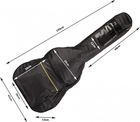 Deze gitaartas is de perfecte oplossing voor alle muziekliefhebbers die stijl en bescherming in één zoeken. Ontworpen met voering voor betere bescherming van het instrument en uitgerust met verstelbare schouderbanden voor comfortabel dragen. Het voorvak biedt ruimte voor accessoires.