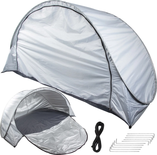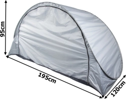 De tent is licht, gemakkelijk mee te nemen en neemt ingeklapt weinig ruimte in. De afsluitbare uitvoering en de mogelijkheid tot verankering met haringen verhogen de stabiliteit en het comfort. De afmetingen 195 × 120 × 95 cm zijn ideaal voor 1–2 personen, of je nu op het strand bent, in de tuin, aan het kamperen of een speelplek voor kinderen wilt creëren.