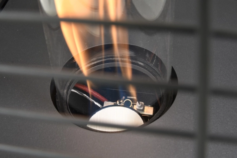 - Designvlam – de glazen buis creëert een haardachtige sfeer.