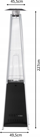 Ontdek een elegante gasverwarmer die modern design met efficiënt vermogen combineert. De duurzame stalen constructie, zichtbare vlam in de glazen buis en een hoogte van 227 cm maken hem tot een opvallend element voor elk terras of pergola. Propaan of butaan zorgt voor stabiele en krachtige verbranding, ook bij kouder weer.