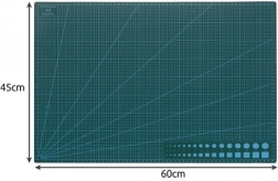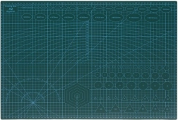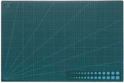 De mat heeft opdrukken aan beide zijden, met verschillende maatstaven en hulplijnen voor optimaal gebruik bij creatieve werkzaamheden.