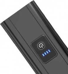 Eenvoudig opladen via de micro-USB-poort maakt snel bijladen mogelijk. Het product is gemaakt van een aluminiumlegering, wat het schokbestendig maakt en een lange levensduur garandeert.