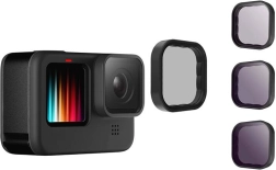 De set van drie ND-filters (ND8/ND16/ND32) vergroot de mogelijkheden van je GOPRO-actioncam bij zonnige dagen en dynamische scènes. De filters verminderen de hoeveelheid invallend licht, zodat je langere sluitertijden kunt aanhouden voor natuurlijke bewegingsonscherpte en een filmische look. Perfect voor sport, fietsen, skiën, evenals timelapse- en long-exposure-fotografie.