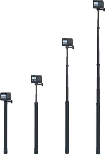 Deze telescopische selfie-stick van koolstofvezel van het bedrijf Telesin voor actiecamera's stelt je in staat om de wereld vanuit een nieuwe, fascinerende perspectief vast te leggen. De lengte kan worden ingesteld tot 3 meter, zodat je veel interessante opnames kunt maken. De accessoire is lichtgewicht maar toch stevig - het buigt niet door. Meegeleverde adapters maken het gemakkelijk om de camera en andere accessoires te bevestigen.
