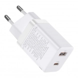 De compacte netlader BASEUS Super Si Pro met een vermogen van 30 W biedt twee poorten – USB‑C en USB‑A – voor het gelijktijdig opladen van twee apparaten. Ondersteunt snel laden PD 3.0 en QC 3.0, heeft brede compatibiliteit met smartphones, tablets en kleine elektronica, en dankzij intelligente beveiliging is veilig in gebruik thuis en onderweg (AC 100–240 V).