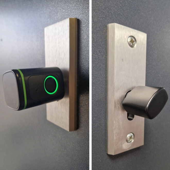 De robuuste behuizing van aluminium en messing is ontworpen voor gebruik binnenshuis (IP50). Dankzij de voeding via een CR123A-batterij zijn er geen kabels nodig – bij een lege batterij vervang je die eenvoudig. De back-up in de vorm van een klassieke sleutel garandeert toegang in noodgevallen.