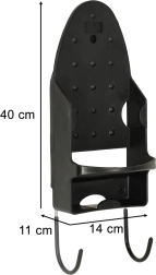 De elegante zwarte houder bespaart ruimte in wasruimte, badkamer en garderobe en zorgt voor een veilige en overzichtelijke opslag van strijkbenodigdheden. De duurzame PBT-constructie maakt het mogelijk het strijkijzer direct na gebruik neer te zetten zonder te wachten tot het is afgekoeld.