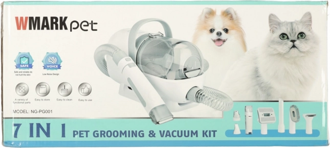 De complete WMARK Pet groomingset maakt zowel schoonmaken als de verzorging van huisdieren makkelijker. Hij combineert het opzuigen van haren direct tijdens het kammen, drie niveaus aan zuigkracht voor gevoelige dieren, een filter dat stof en allergenen opvangt en rijk accessoires voor knippen, borstelen en precisiewerk.