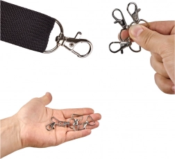 De set “vis”-karabiners biedt alles wat je nodig hebt voor naaien, het maken van promotionele lussen, reparaties van tassen en rugzakken, of het creëren van je eigen sleutelhangers. De robuuste zink-ijzerlegering en het draaimechanisme zorgen voor comfortabel gebruik zonder dat bevestigde banden torderen.