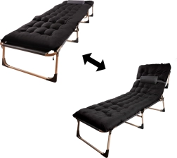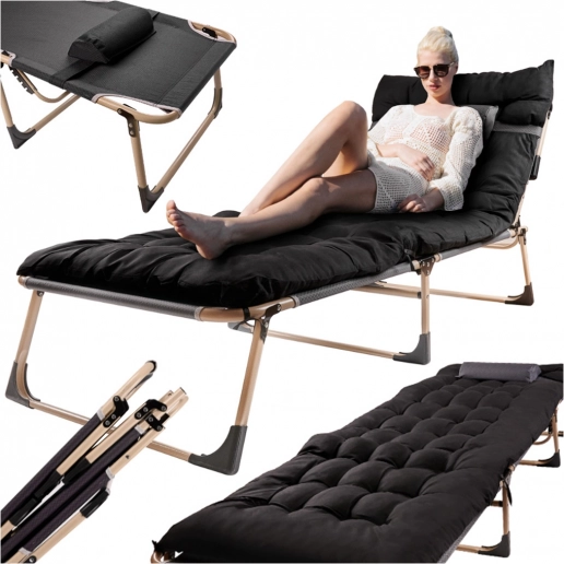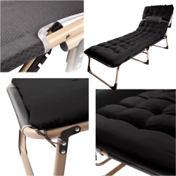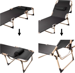 Geniet overal van comfortabel relaxen – op het terras, in de camping of in de tuin. Het opvouwbare kampeerbed met matras combineert een stabiel stalen frame en duurzame textiele hoezen van Oxford 1200D met een waterkolom van 3000 Pa. Dankzij de in 4 standen verstelbare rugleuning gebruik je het zowel als ligstoel als bed.