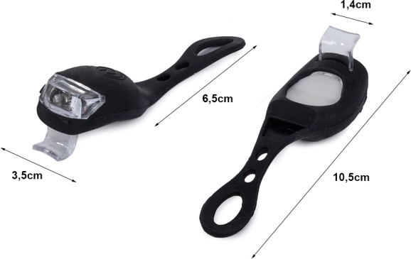 Deze compacte fietslichten bevestig je dankzij de flexibele siliconen bandjes in enkele seconden aan stuur of frame. De robuuste constructie is waterdicht, dus geschikt voor regen en mist, en de heldere LED's zorgen ervoor dat je goed zichtbaar bent in en buiten de stad.