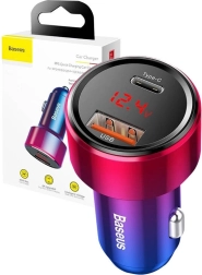 De compacte BASEUS autolader met een vermogen tot 45 W laadt je telefoon, tablet of navigatie snel en veilig op. Biedt USB‑C en USB‑A poorten voor gelijktijdig opladen van twee apparaten, ondersteuning voor QC 4.0, PD 3.0, PPS en andere protocollen, en een geïntegreerd digitaal display voor inzicht in de spanning.