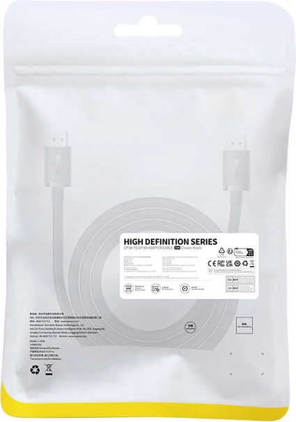 De BASEUS High Definition DisplayPort‑naar‑DisplayPort‑kabel biedt een bandbreedte van 32 Gb/s voor kristalhelder beeld in 8K/60 Hz, 4K/120–144 Hz en tot 2K/240 Hz. Dankzij HDR en 12‑bit kleurdiepte krijg je diepere contrasten, precieze schaduwen en tot 68,6 miljard kleuren voor een werkelijk realistische weergave.