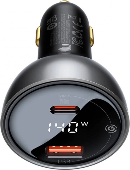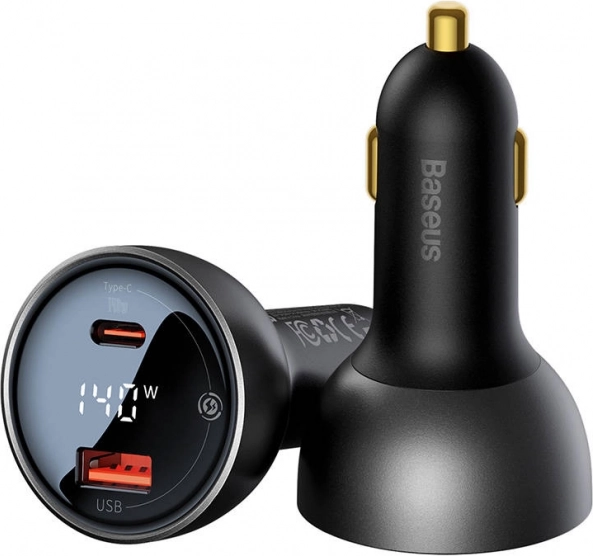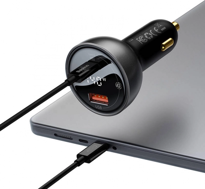 Autolader Baseus Superme met display, USB‑C + USB, 140 W, zwart