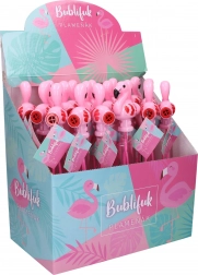 Geniet van plezier met de originele 2-in-1 bellenblaas in de vorm van een flamingo, die niet alleen prachtige bellen maakt, maar ook geluiden produceert dankzij het fluitje.