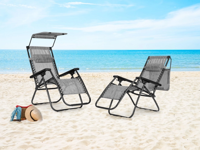 Opvouwbare verstelbare tuin-/strandstoel met zonnescherm grijs