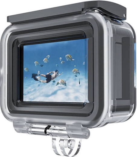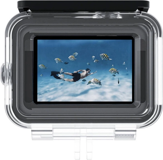 De waterdichte hoes voor GoPro Hero camera’s model 12, 11, 10 en 9 maakt zorgeloze onderwateropnames mogelijk tot een diepte van 45 meter. Dankzij het geharde glas met hoge lichtdoorlaatbaarheid behaalt u uitstekende beeldresultaten met levendige kleuren. In de verpakking zitten antimist‑inserts die effectief condensvorming binnenin de hoes voorkomen.
