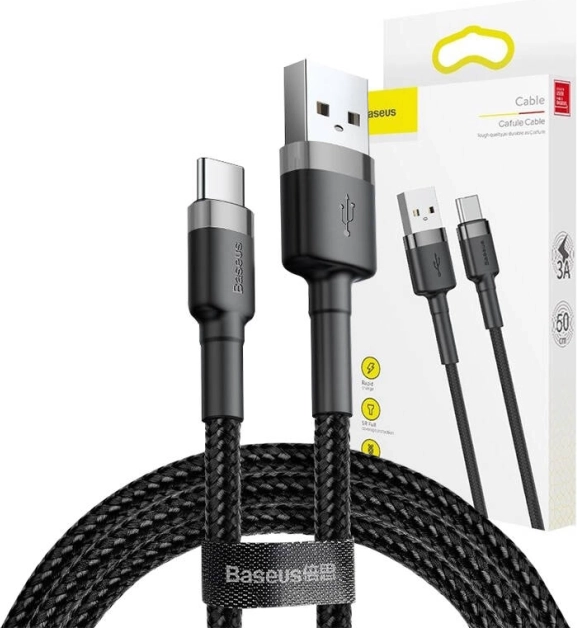 - Baseus Cafule USB-kabel voor Type-C 3A 1M grijs-zwart
