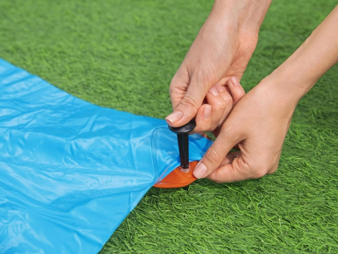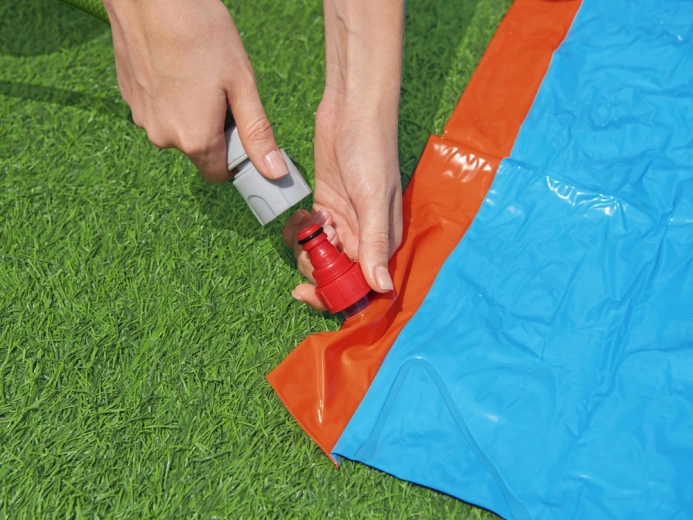 Sluit gewoon een tuinslang aan op het speciale ventiel en geniet van direct plezier tijdens het glijden.