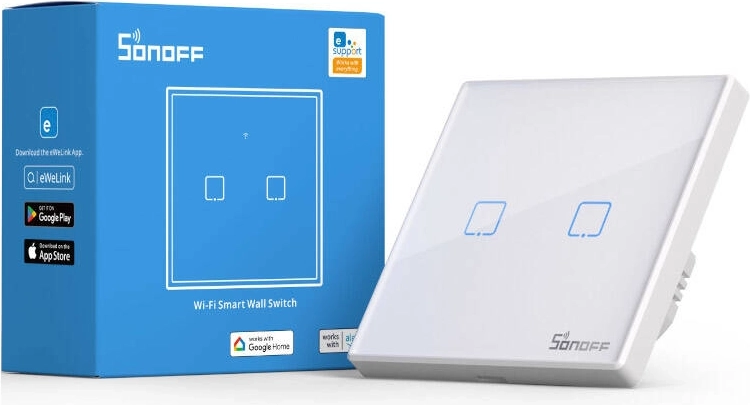 Maak van gewone verlichting slimme verlichting. SONOFF T2 EU TX (2 kanalen) laat je lampen bedienen vanaf elke plek via de eWeLink‑app (iOS/Android), met een klassieke touch‑bediening én met een RF 433 MHz‑afstandsbediening. Directe statussynchronisatie in de app geeft je de zekerheid van volledige controle over je huis.