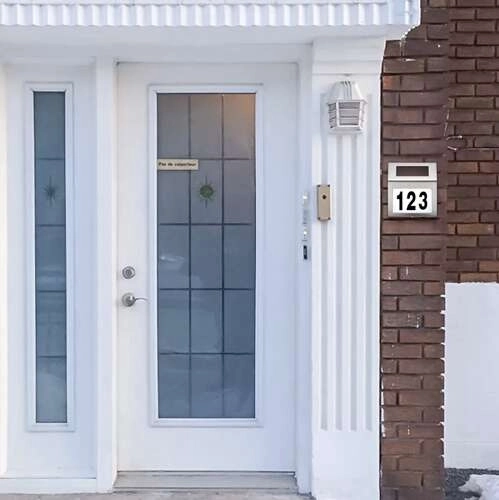 Het biedt ook compacte constructie met een gladde metalen behuizing, wat zorgt voor een modern uiterlijk en bestendigheid tegen weersinvloeden. Het nummer is goed leesbaar op elk oppervlak dankzij het elegante ontwerp en de geschikte grootte van de cijfers.
