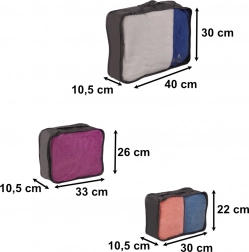 De set reisorganizers helpt je kleding en accessoires te scheiden, zodat alles overzichtelijk blijft en op zijn plek zit. Vier cubes in verschillende maten zijn ideaal voor T-shirts, ondergoed en truien, terwijl de aparte schoenenzak en het praktische etui voor kleine spullen de rest van je uitrusting schoon en veilig opgeborgen houden.