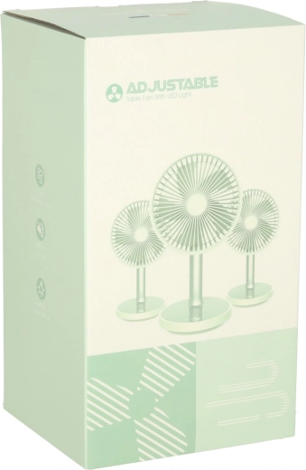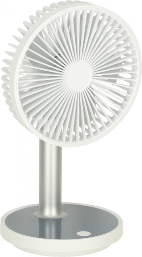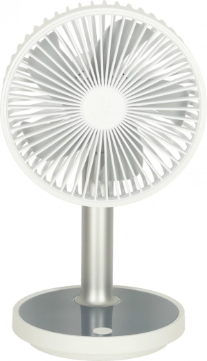 Compacte en elegante tafelventilator met oplaadbare batterij, biedt 4 vermogensniveaus, stille werking en LED-verlichting in de basis. Dankzij voeding via USB‑C en een in hoogte verstelbare stand van 30–38 cm is hij ideaal voor bureau, nachtkastje en kinderkamer. Op één lading werkt hij tot wel 7 uur.