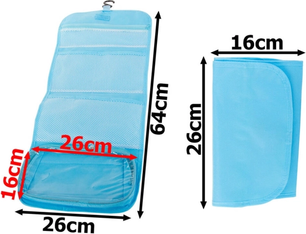 De elegante en praktische toilettas is ontworpen voor snelle toegang tot je cosmetische spullen. Hij is geweldig voor zowel mannen als vrouwen en kan eenvoudig worden opgehangen in de badkamer dankzij de haak.
