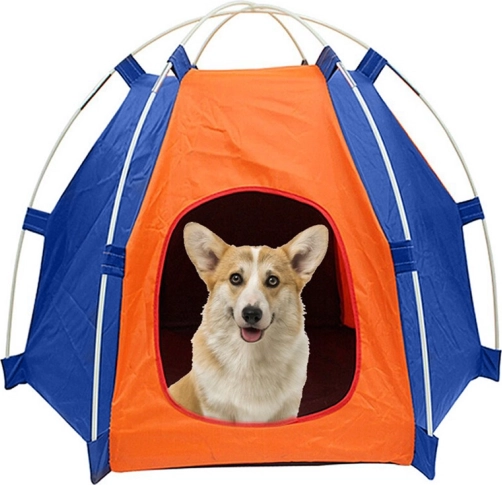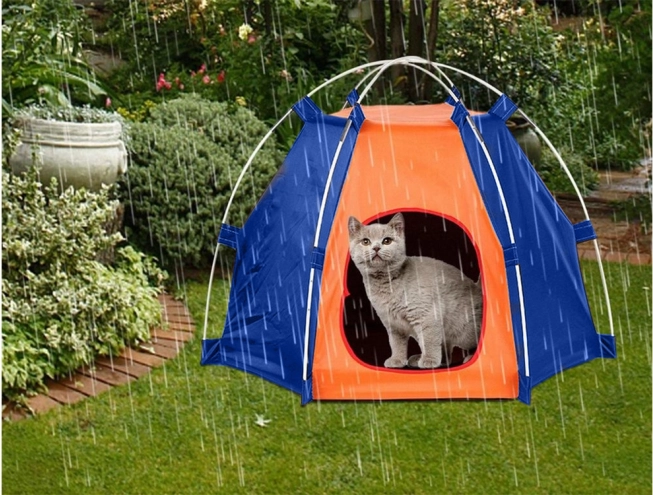 De praktische tent voor honden en katten creëert een comfortabele schuilplaats tijdens rustmomenten en op reis. De duurzame stof beschermt tegen regen en vocht en biedt tegelijk aangename schaduw tegen de zon, zodat je huisdier droog en comfortabel blijft. De afgeronde ingang vergemakkelijkt de doorgang en de luchtige constructie bevordert de ventilatie.
