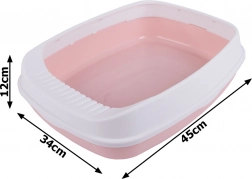 Praktische en ruime kattenbak met rand en schepje voor eenvoudige verzorging. Dankzij de open constructie en hoge randen wordt rommel rondom effectief beperkt. Gemaakt van duurzaam plastic, met een glad oppervlak voor snel reinigen, en met afmetingen van 45 × 34 × 12 cm geschikt ook voor grotere katten.