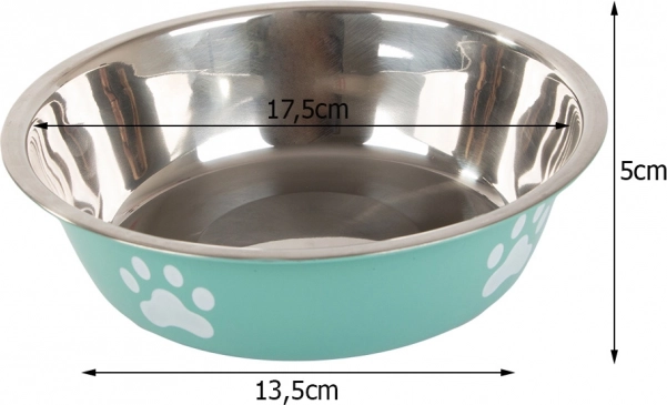 Stijlvolle voerbak van roestvrij staal met een inhoud van 400 ml, ideaal voor voer en water voor honden en katten. Dankzij de antislip rubberen basis blijft de bak stevig op zijn plaats, is hij gemakkelijk te reinigen en de duurzame constructie met decoratieve pootafdrukken past mooi in elk interieur.