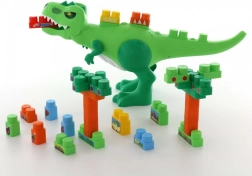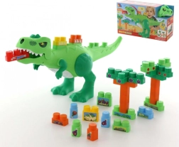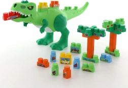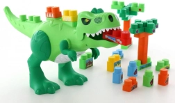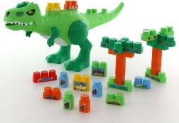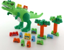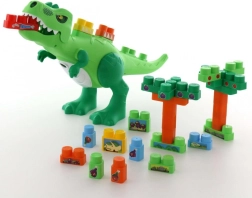 Op de rug en staart van de dinosauriër zijn er plaatsen om de blokjes vast te maken, zodat het kind zelf kan ontwerpen hoe de dinosauriër eruitziet. Met gemakkelijke verwijdering van de blokjes uit de onderkant kan een nieuw omgeving voor de dinosauriër