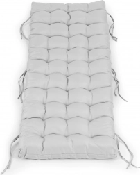 De duurzame stof is onderhoudsvriendelijk, slijtvast en kleurecht en geschikt voor buiten. Lange bevestigingsbanden aan vier zijden voorkomen wegglijden en houden het kussen precies waar je het nodig hebt. De neutrale grijze kleur combineert gemakkelijk met het meeste tuinmeubilair.
